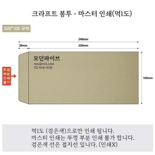 [마스터봉투] 소봉투 크라프트 98g (먹1도인쇄) > 봉투