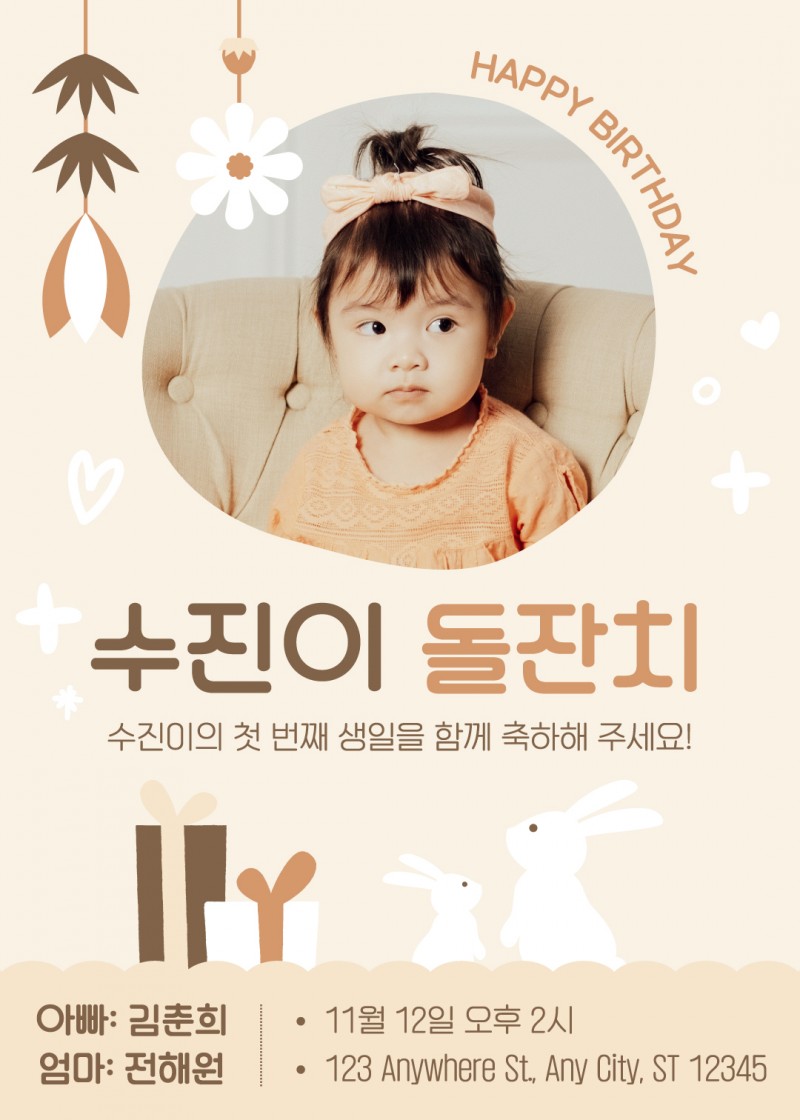 엽서샘플_7934번_갈색_귀여운_돌잔치_초대장
